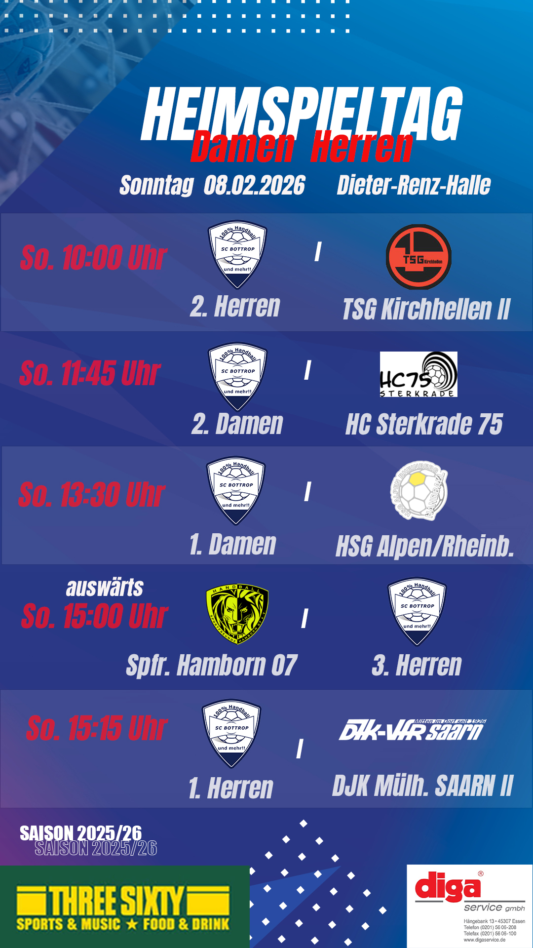 Liebe Handballfreunde, das diesjährige Handballcamp 2026 der Jugend findet erneut in den Osterferien statt. Alle Mädchen und Jungen, die die Gelegenheit nutzen wollen ihre Handballskills zu verbessern und die Ferienzeit mit Freunden*innen verbringen wollen, sind herzlich willkommen. Das Camp findet jeweils an 2 Tagen…